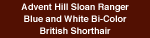 At Advent Hill Cattery we emphasize health and a loving disposition as well as correct type and size. We handle each kitten with gentleness and love from birth onward to ensure that, whether they are destined for the show ring or to be treasured family pets, they will be loving and confident. We will sell no kitten until it has had sufficient time to develop its personality as a cat and receive its immunizations. We feel that the wait is a small price to pay to ensure that the new owner receive a healthy, well-adjusted cat. For a breed that remains kitten-like its whole life, a few weeks extra is not so important.